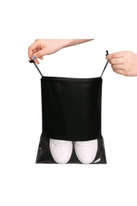 Multipurpose Travel Shoe Storage Bag with Transparent Window – Black (Drawstring Closure)