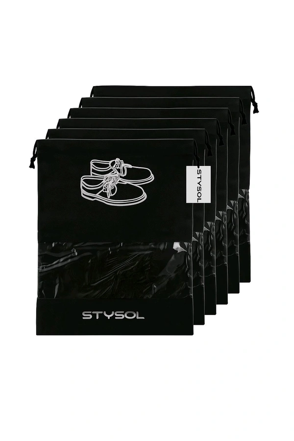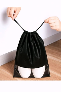Multipurpose Travel Shoe Storage Bag with Transparent Window – Black (Drawstring Closure)