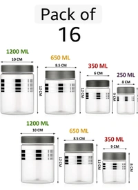 Pack of 16 Transparent Food Storage Containers (1200ML, 650ML, 350ML, 250ML)