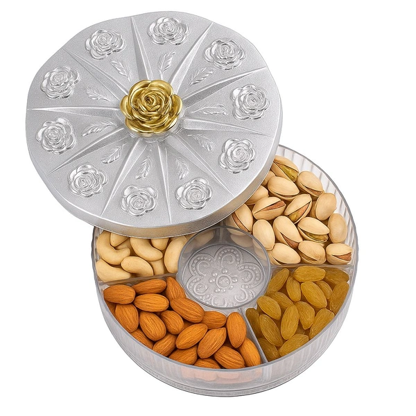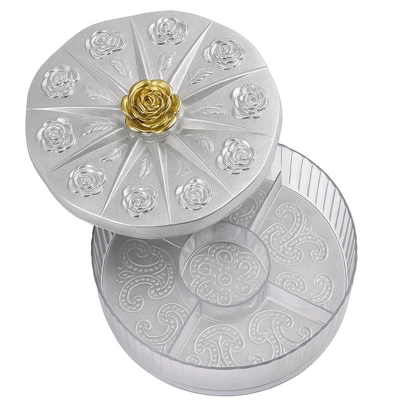 Rose Design Dry Fruit Storage Tray with Lid – 5 Section Organizer