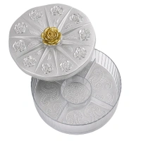 Elevate your home organization game with the Rose Design Dry Fruit Storage Tray with Lid, a perfect blend of elegance and functionality. Whether you're hosting a gathering or simply keeping your pantry neat, this stunning 5-section organizer is designed to store and display your favorite dry fruits, snacks, or small treats in style.
